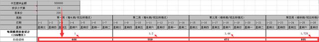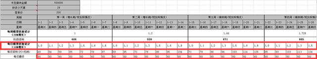 做完每周的比例調(diào)整,就要細(xì)分到每天上面。這個表格只是簡單的設(shè)計了計算公式,只要確定好目標(biāo),自動計算結(jié)果,然后根據(jù)這個目標(biāo)去把控數(shù)據(jù)。