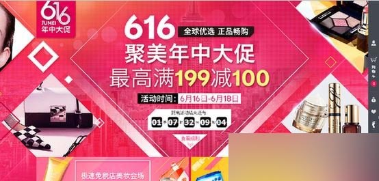 聚美優品:聚美優品作為垂直電商中的新貴,在此次年中大促中推出了“神價格爆款”、“官方推薦區”、“精選熱銷區”、“超值特惠區”四個板塊,同時也推出了滿減疊加不封頂等活動。