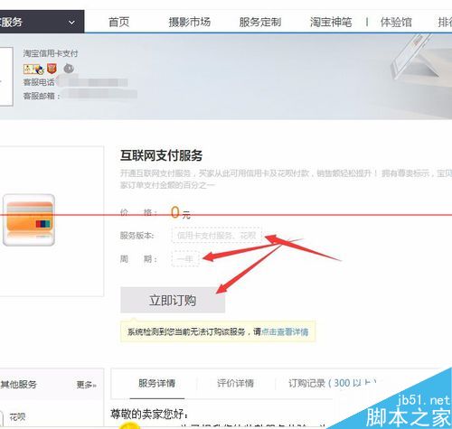 7、在打開的申請開通頁面里,我們點擊選擇服務版本,周期,然后點擊“立即訂購”即可 如圖