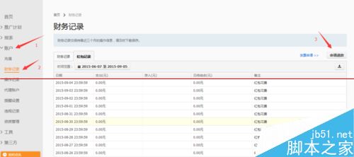 2、進入直通車后臺之后,點擊賬戶,再點擊財務記錄,然后我們就可以看到右側有個申請退款