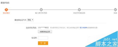 4、可以看到更換手機(jī)號(hào)碼只需要三個(gè)步驟,通過(guò)舊手機(jī)號(hào)碼驗(yàn)證身份——輸入新的手機(jī)號(hào)——填寫(xiě)發(fā)送到新的手機(jī)上的號(hào)碼,這樣便完成了手機(jī)號(hào)的更換。