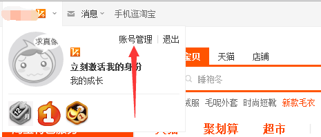 2、登錄成功后,把鼠標(biāo)放在左上角的賬號(hào)上,在出現(xiàn)的下拉菜單中找到賬號(hào)管理的字樣并點(diǎn)擊。