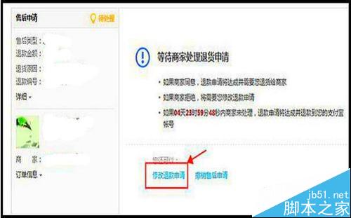 4、未收到貨物申請退款——修改退貨申請,確認退貨。退貨申請還可以再修改,只需要單擊下方的修改連接即可。當退貨申請修改完成,退貨申請被確認之后,在頁面上可以觀察到包括物流在內的諸多退貨的相關信息。