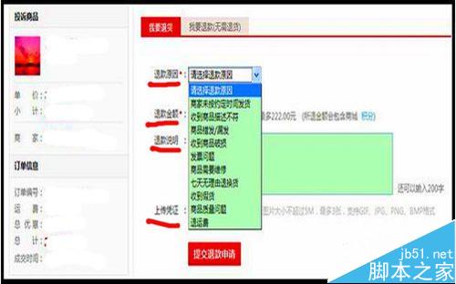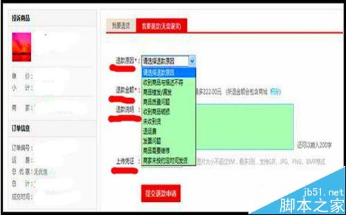 6、收到貨物后申請退款——提交退款申請。同樣和未收到退貨的退貨的步驟一樣,退貨首先需要填寫退貨說明、退貨原因,金額等相關信息。此處退款的金額等不能隨意填寫,要不大于當初買貨的金額,否則不能正常退款。