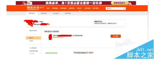 2)在網(wǎng)頁登陸賬號,并點(diǎn)擊【導(dǎo)航淘金幣】--【我的淘金幣】