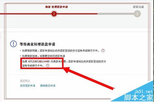 5、提交退款申請后,系統會顯示如下圖的頁面。如果商家及時處理了,退款很快就達成了。如果商家一直沒有處理,系統自動在5天后達成退款。