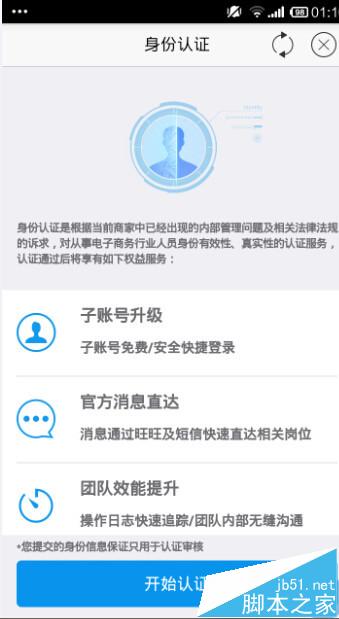 1、當收到需要實名認證的時候,有3天時間給大家認證,每次登錄子帳號,就會提示您認證,彈出的提示會有一個二維碼,手機千牛登錄子帳號掃二維碼就可以進入認證流程。另外,在主帳號的子帳號管理后臺也有這二維碼,用子帳號登錄手機千牛掃二維碼即可。