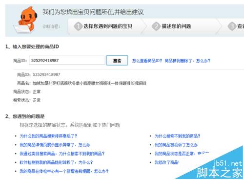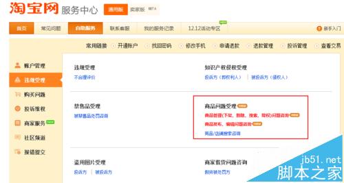 5、在商品問題受理下,商品管理(下架、刪除、搜索、降權)問題咨詢,我們選擇這個,并點擊進去!