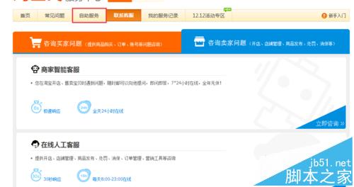 3、進來后,這里提供了商家智能客服和在線人工客服兩種類型,但我們不需要這兩個類型,在導航欄中,直接定位到自動服務!