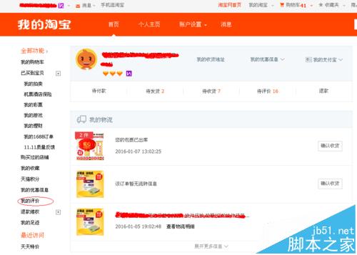 2、點(diǎn)擊我的淘寶,進(jìn)入我的淘寶頁面,找到“我的評(píng)價(jià)”