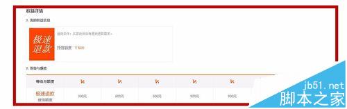 4、打開之后,你可以看到淘寶會根據你的淘寶買家等級給予你不同的額度的極速退款,如下圖: