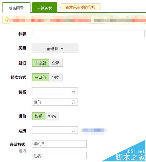 3、如果要發布“個人閑置”寶貝,按照下表填寫寶貝信息,完成后點擊“發布寶貝”,