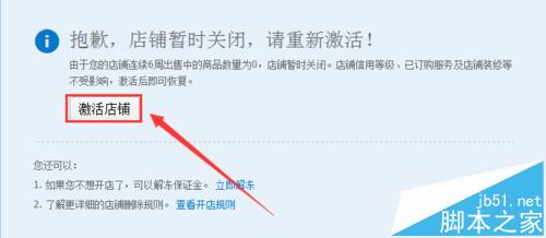 2、進入賣家中心,可以看到“激活店鋪”的提示框,點擊“激活店鋪”