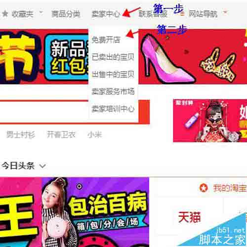 1、首先,要有一個【淘寶賬號】,如果沒有的可以去淘寶平臺注冊一個。有淘寶賬號的可以直接登錄,前提要有自己的淘寶店。登錄以后,會出現一個畫面,用鼠標點擊【賣家中心】,會出現【免費開店】,再點擊【免費開店】。