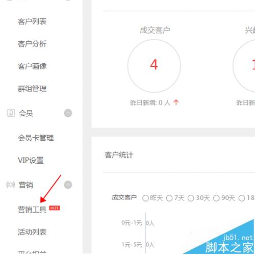 6、進入【會員關系管理】之后,在左邊找到【營銷工具】,點擊【營銷工具】,就會出現【打折】這個頁面了。