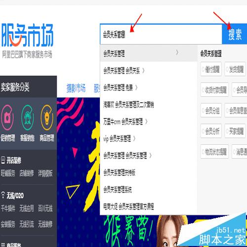 3、點擊【我要訂購】之后,會進入服務市場,在搜索欄里,輸入【會員關系管理】,點擊搜索。會出現很多打折軟件,找到【會員關系管理】。