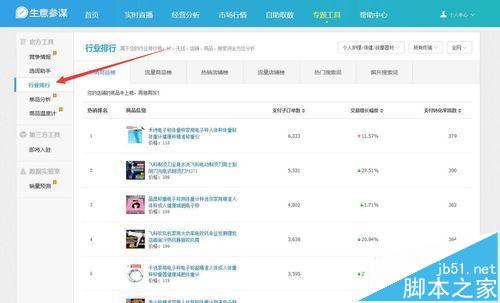 3、在左側官方工具下面找到行業排行工具,點擊進去。