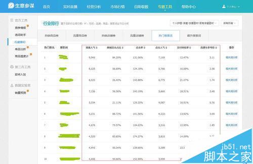 8、選擇熱門搜索詞,可以看到同行業下的搜索熱詞,他的作用就不說了,同行的都明白。還有一些其他的數據,大家自己研究吧。