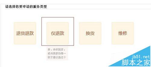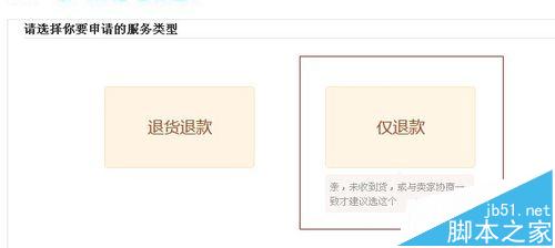 4、這個頁面有兩個服務類型,選擇“僅退款”進入下一個頁面