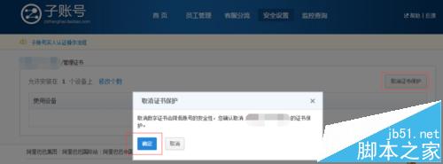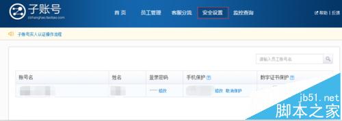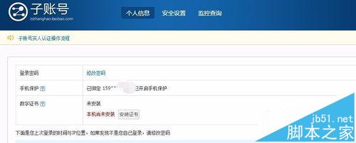 2、在安全設置頁,找到要設置的子賬號,把鼠標放在數字證書保護下面的未安裝上面,會顯示出管理證書,點擊管理證書。