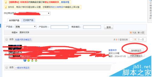 2、選擇需要上架的供應商產品,點擊“發布新寶貝”,如圖: