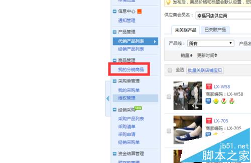 3、在左側找到商品管理,點擊“我的分銷商品”,如圖: