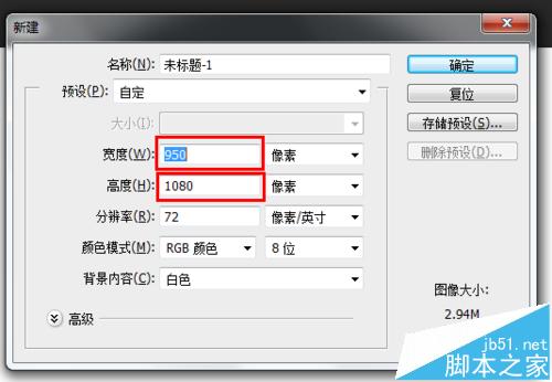 2、然后新建一個950x1080的文檔,雙擊背景圖層,變成普通圖層,填充一個顏色