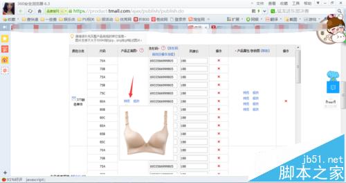 1、寶貝管理-發布新產品-產品關鍵屬性-添加產品規格。顏色分類部分先寫顏色名再選擇基礎色,然后勾選尺碼。這里小編以發布文胸為例。