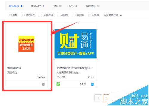 3、找到服務(wù)。點(diǎn)擊“搜索”之后會(huì)顯示你所想找的服務(wù),找到“退貨運(yùn)費(fèi)險(xiǎn)”點(diǎn)擊進(jìn)入
