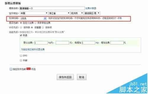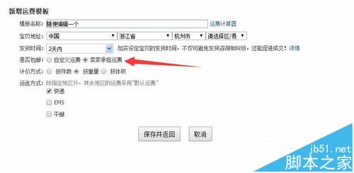 6、最下面有個指定條件包郵,就比如說滿百包郵等等 填寫好后 一定要記住要保存并返回