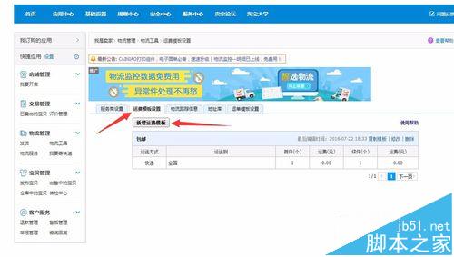 運費模板的設置是在這里 但是生效要在寶貝編輯里面處理。