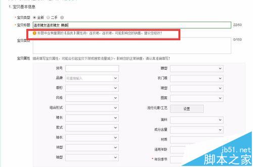 3、關鍵詞原則 :寶貝標題對應寶貝屬性 可以增加寶貝權重和轉化率,寶貝屬性需要依靠寶貝的自身填寫。 比如你寶貝屬性里面填寫森女 你的標題加上森女 就會和你的屬性對呀從而增加權重 濫用關鍵詞只會造成隱形降權