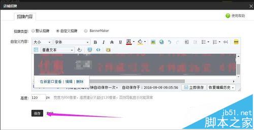 8、當前頁面跳轉回上面第3步的“店招內容”這里,點下面的“保存”,表示把剛才的操作保存。