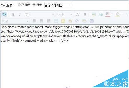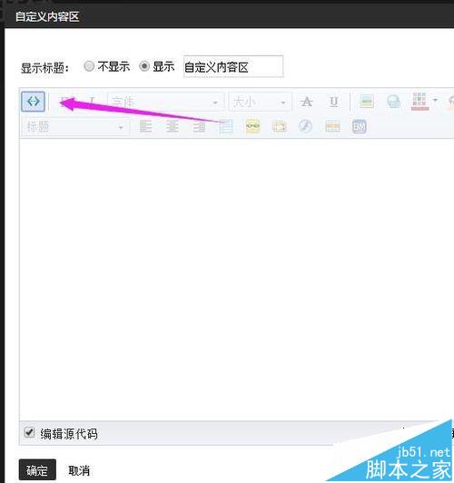 5、回到裝修頁面的自定義模塊編輯頁面,、在頁面的左上方,點源碼圖標,如圖所示: