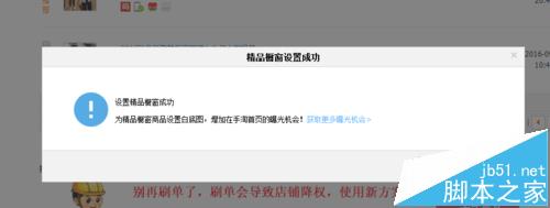 7、這樣就設(shè)置成功了,同時也會提示成功,設(shè)置成功后,會有什么區(qū)別,我們是看不到很直觀的變化,便淘寶系統(tǒng)已經(jīng)將寶貝列為精品櫥窗推薦了!