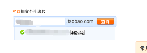 6、輸入你要更改的店鋪網址后,點擊查詢,如果網址可以使用的話,會提示你申請綁定的,不行的話會顯示已經占用了,這時就需要修改其他網址了,修改后直到提示可以申請綁定,那就修改成功了