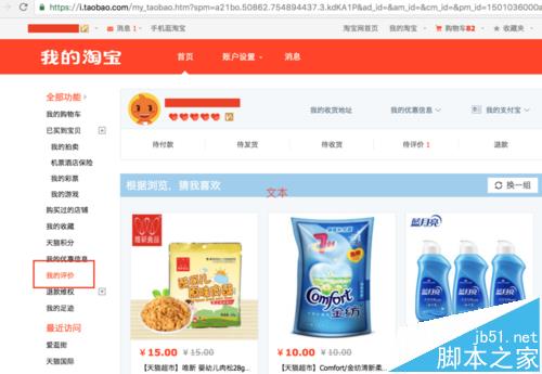 5、在個人信息管理頁面有很多內(nèi)容,比如積分收藏評價等,這里選擇"我的評價"。如下圖紅框內(nèi)。