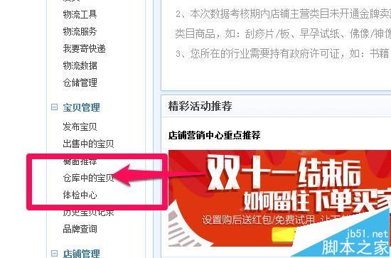 2、接著在賣家中心選擇倉庫中的寶貝。