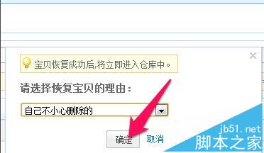 5、選擇恢復理由,完成恢復寶貝到倉庫。