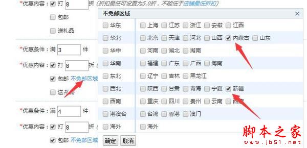 這樣設置之后,及時顧客在進店購買的時候,及時滿足活動門檻,尤其他是我們設置的偏遠地區的顧客,也是不享受此優惠活動的,當然,是否設置不免郵地區還是要根據你的產品的利潤情況而定!