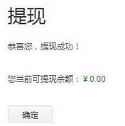 5、提現(xiàn)成功時(shí),將出現(xiàn)“恭喜你,提現(xiàn)成功”的字樣。