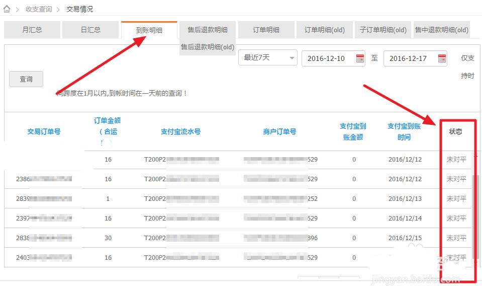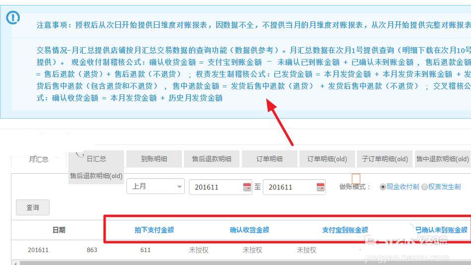 7、除了拍下支付金額、確認(rèn)收貨金額、支付寶到賬金額統(tǒng)計情況外,還有可以查看到賬明細(xì)等其他明細(xì)報表。