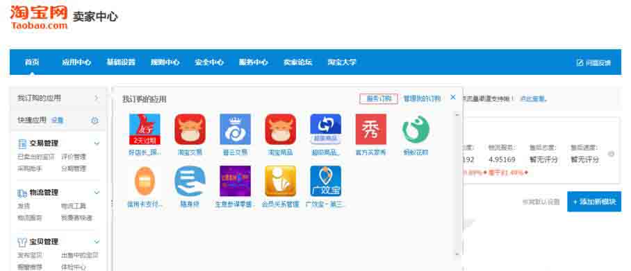 1、登錄賣家?guī)ぬ枺M入賣中心,在我訂購的應用中,并點擊進入“服務訂購”