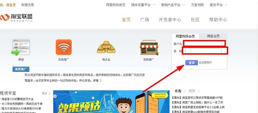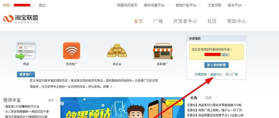1、打開阿里媽媽,選擇淘寶聯盟。