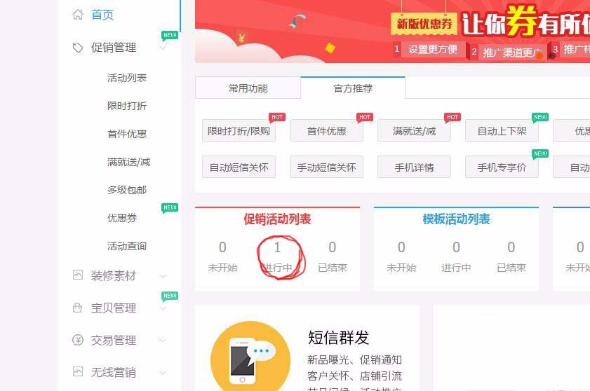 3、在商家營銷中心的首頁旁找到優惠活動。