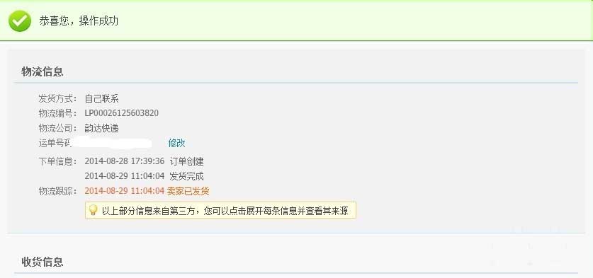 5、系統提示你發貨成功,就表示快遞單號填寫成功了