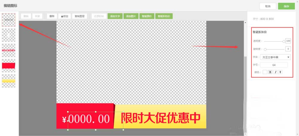 3、進入到編輯頁面,選擇對應需要編輯的圖層進行設置,編輯好后選擇右上角的保存按鈕,完成設置。