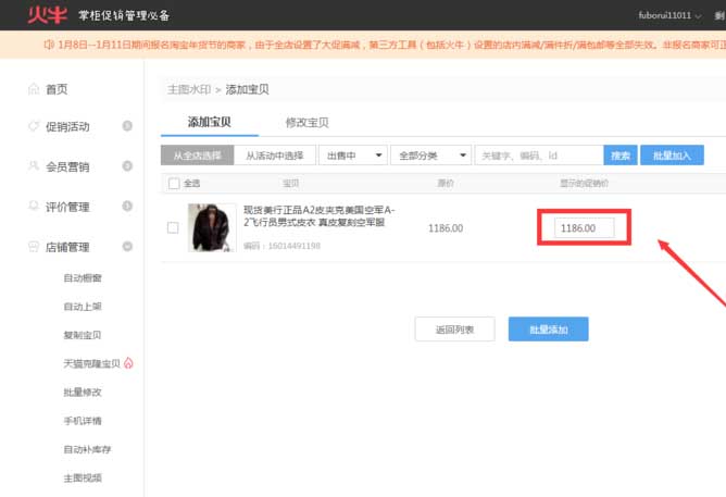 5、然后,我們選擇需要參加活動的寶貝,并依次的輸入活動的促銷價格,然后點擊“加入活動”完成設置。