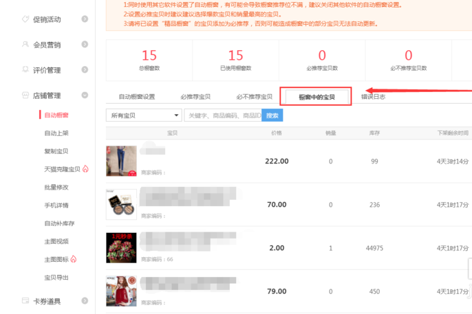 4、設置完成后,我們可以去“櫥窗中的寶貝”查看已經在櫥窗推薦中的寶貝。