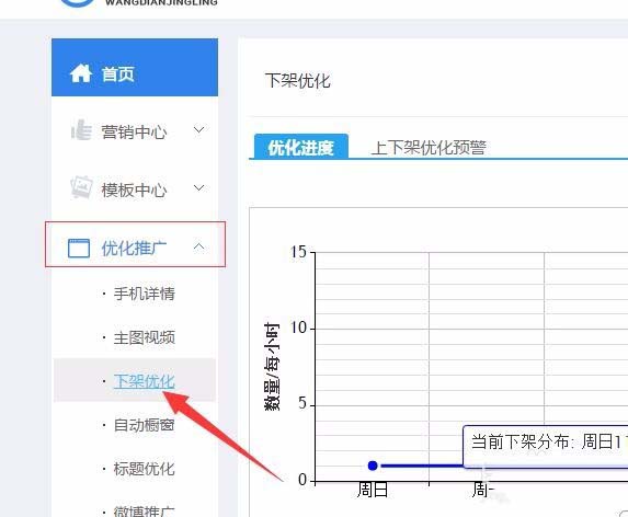 4、下架優化。平時上架寶貝都是很多一起上架的,下架時間肯定不合理,這里使用下架時間優化一下,一般小編就用一鍵優化了,因為系統會給你分配比較合理的時間,而且操作7天后自動優化完畢,省時省力。
